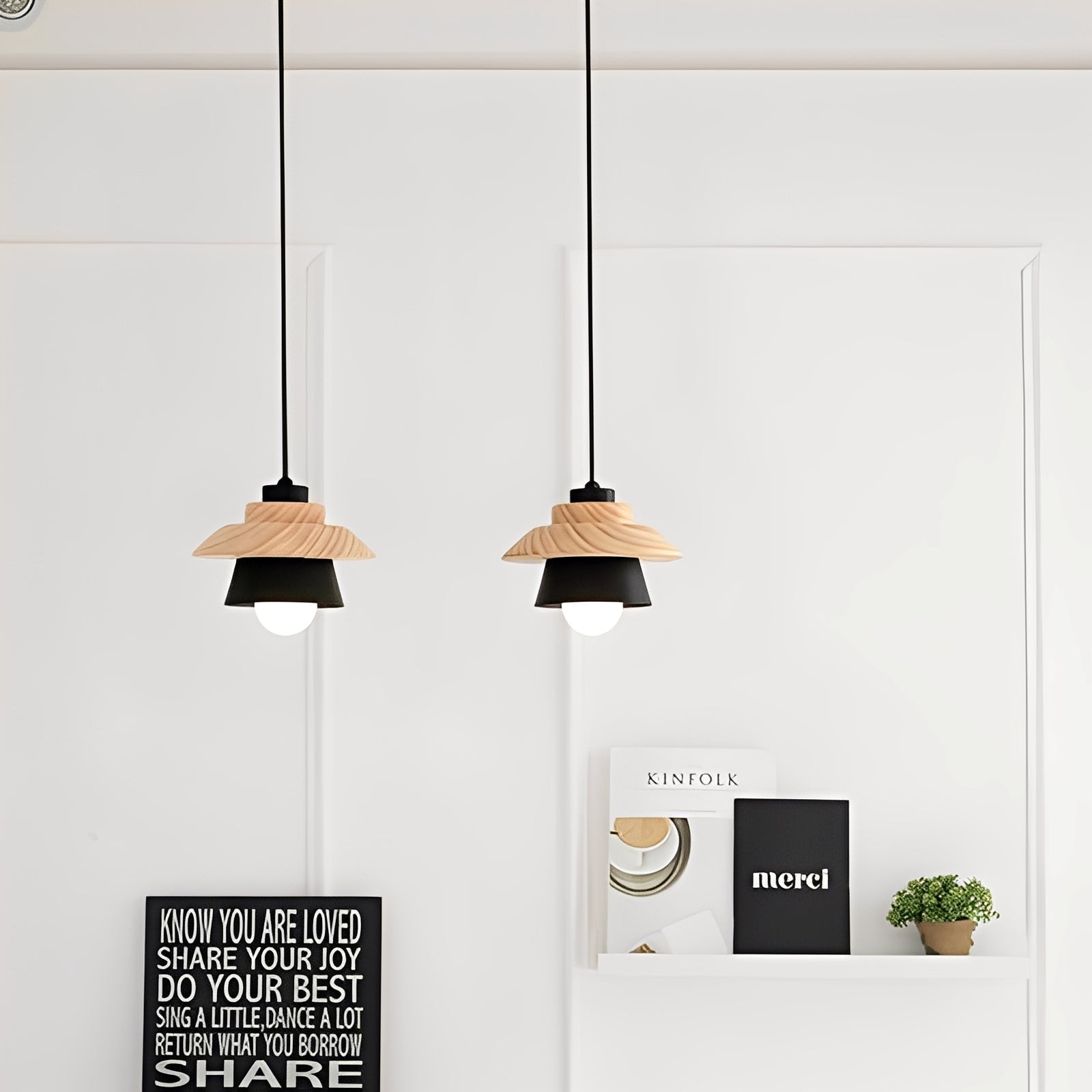 Die Aiko Pendelleuchte vereint japanische Schlichtheit mit nordischem Flair. Ihr minimalistisches Erscheinungsbild und die harmonische Verbindung von Holz und Metall schaffen eine beruhigende und elegante Atmosphäre – ideal für Schlafzimmer, Esszimmer oder moderne Wohnbereiche.