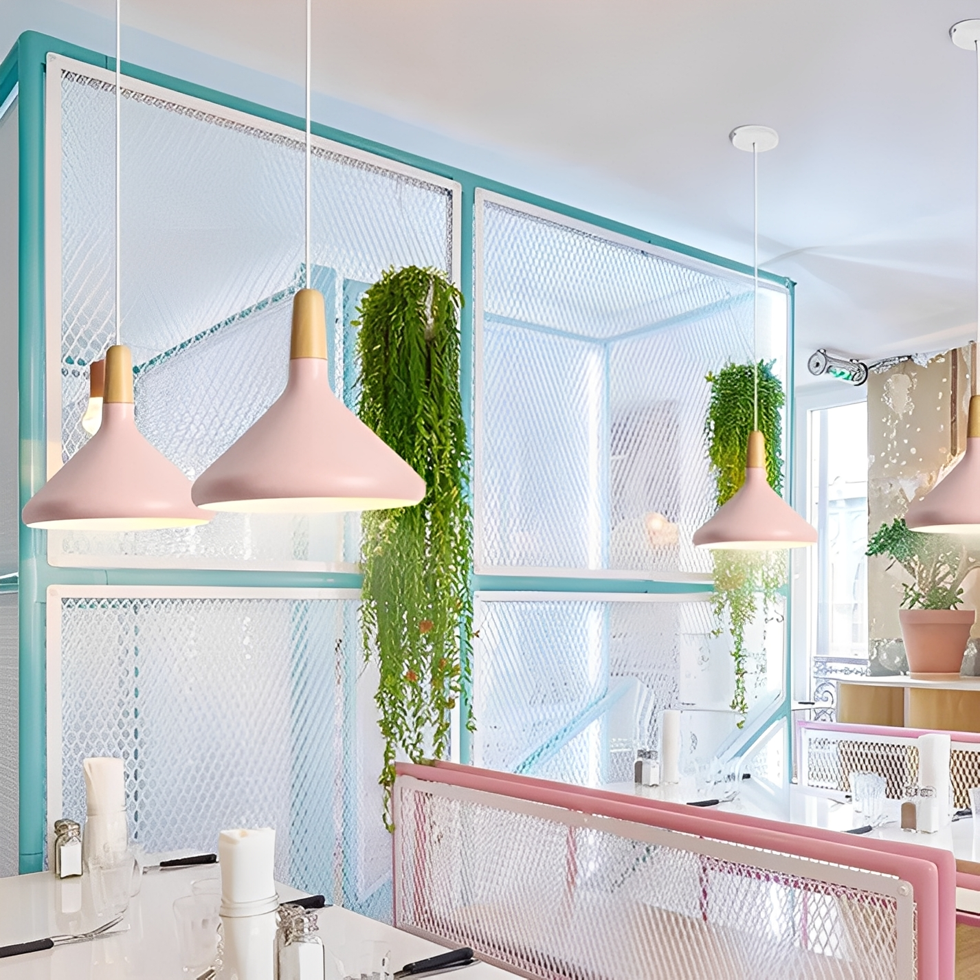 Die Alexa Pendelleuchte überzeugt mit ihrem modernen, kegelförmigen Macaron-Design und bringt lebhafte Eleganz in jeden Raum. Sie verleiht Wohn- und Arbeitsbereichen einen eleganten sowie verspielten Akzent.