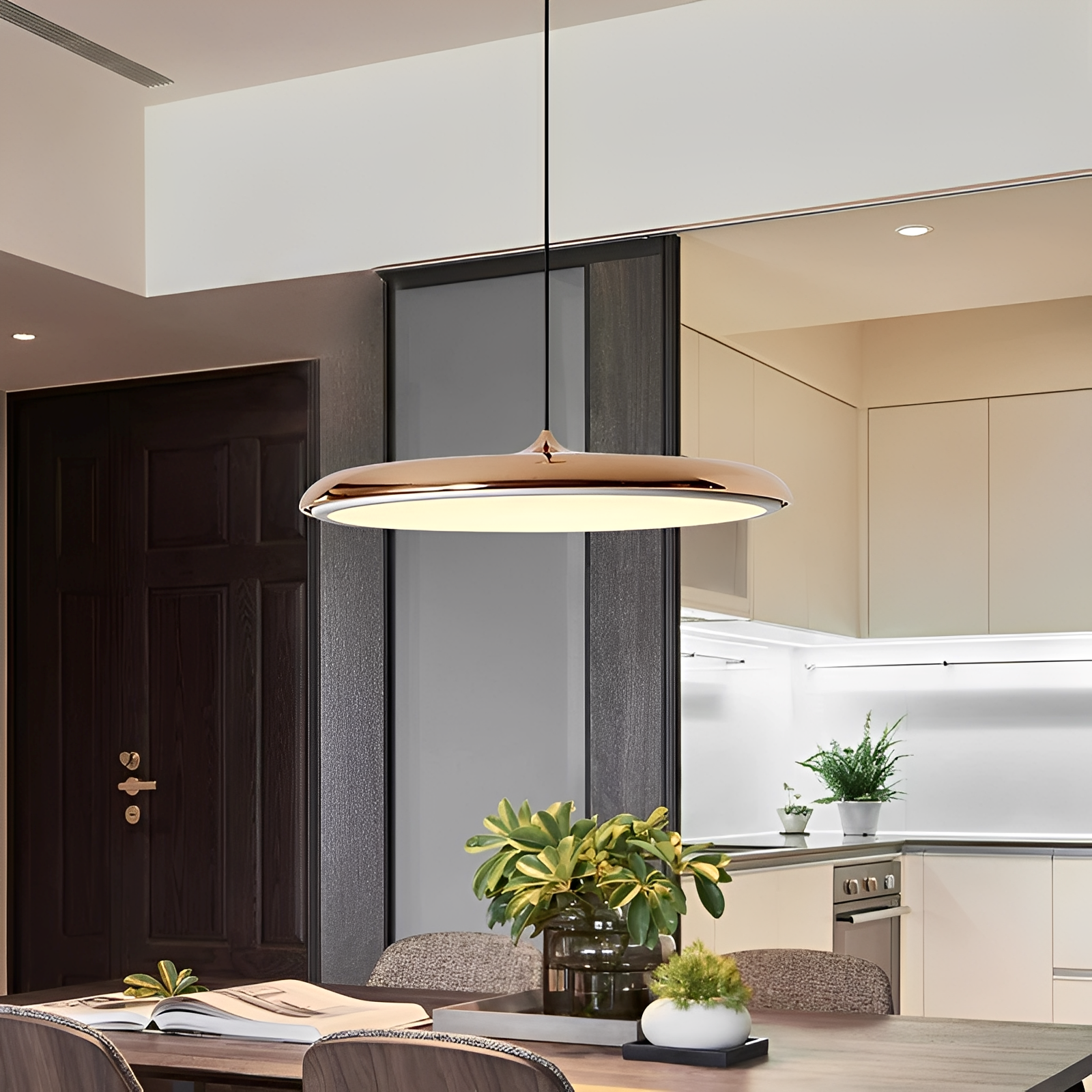 Mit Amir bringen Sie modernes Design und kreative Formen in Ihr Zuhause. Diese Macaron Pendelleuchte im eleganten Raumschiff-Design verleiht Esszimmern, Schlafzimmern oder anderen Wohnbereichen einen besonderen Charakter. Die Kombination von Roségold, Weiß, Schwarz oder Blau passt gut zu verschiedenen Einrichtungsstilen und erzeugt eine warme, einladende Lichtstimmung.