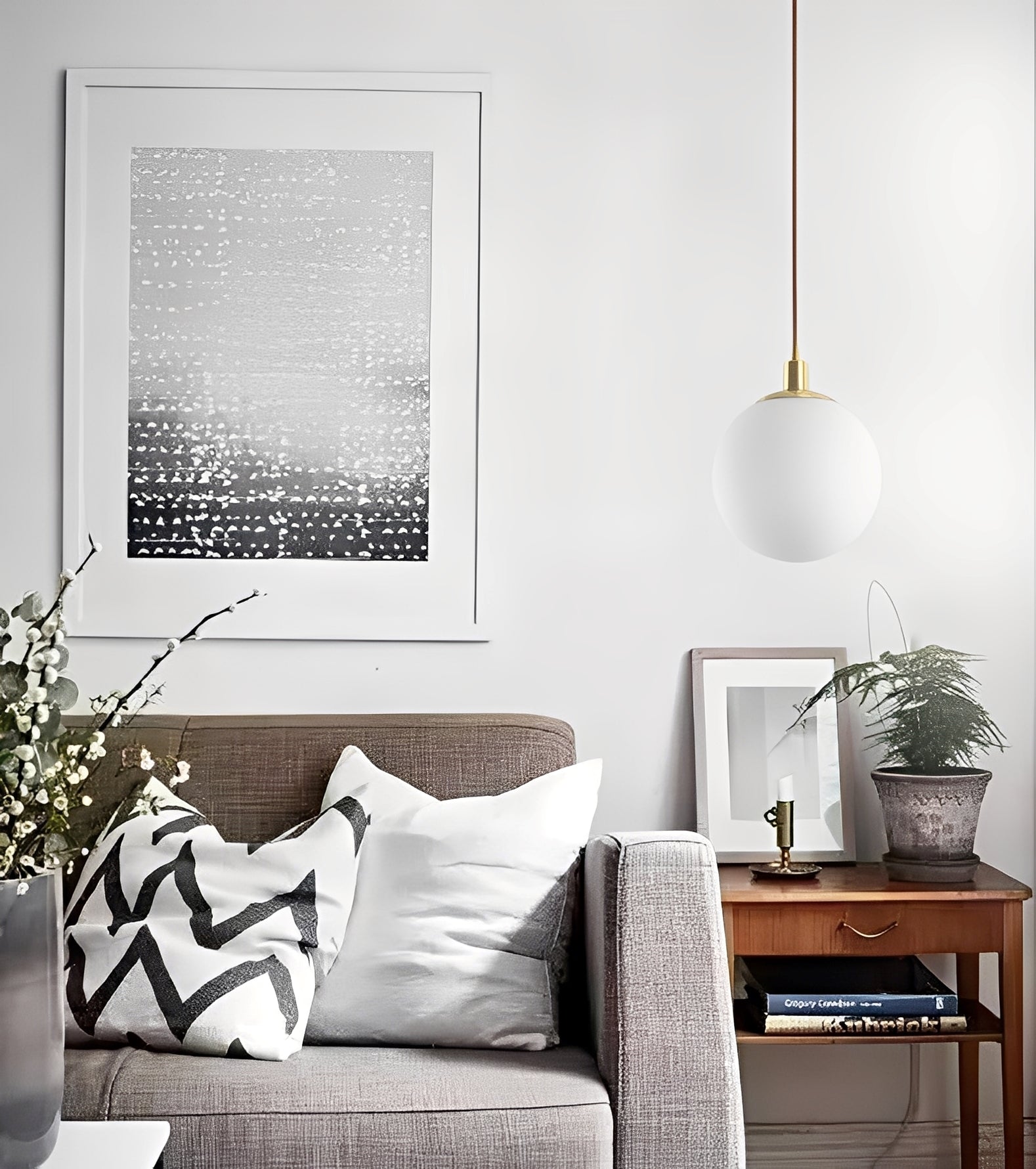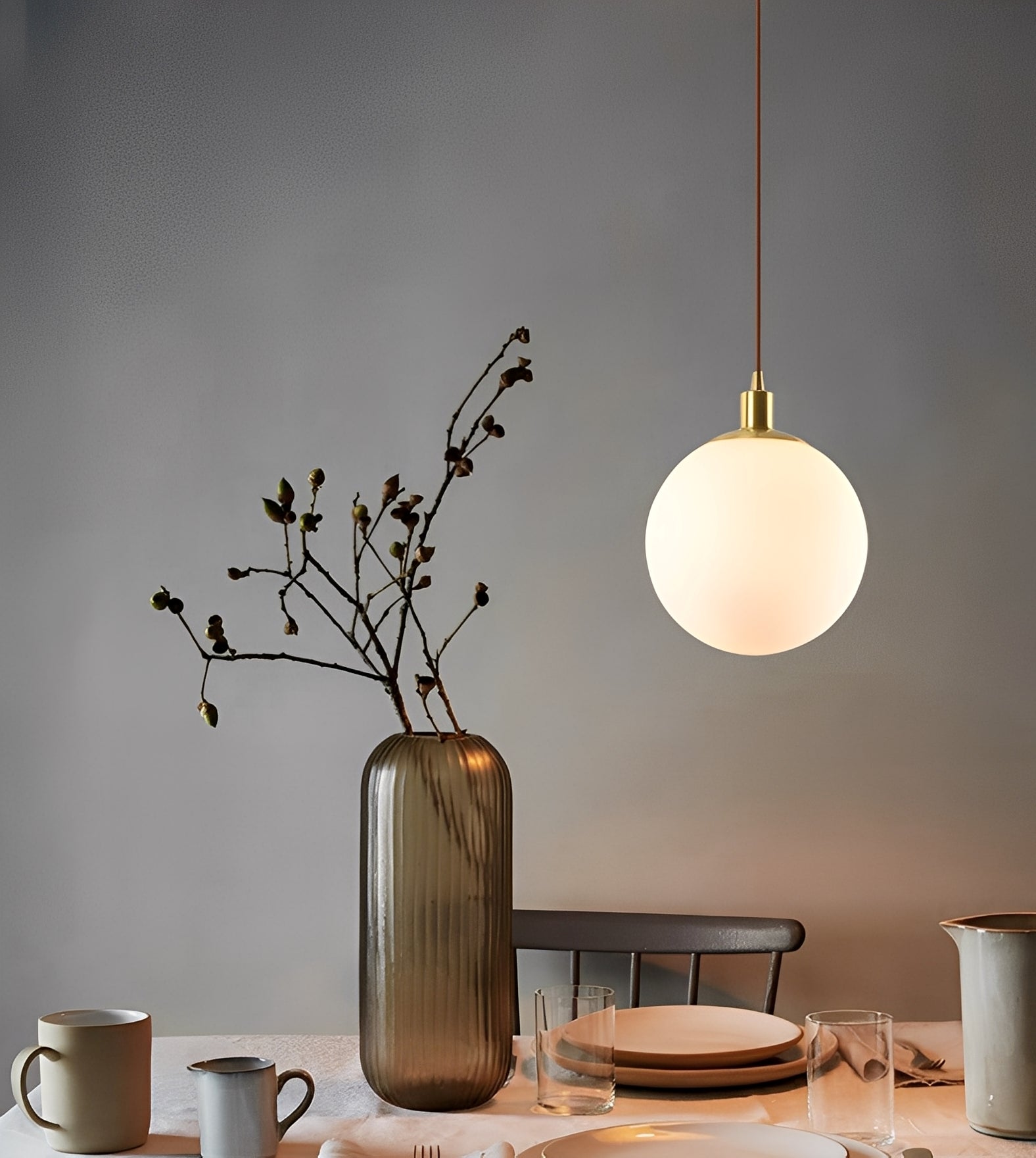 Die Ariane Pendelleuchte vereint skandinavisches Design mit eleganter Einfachheit. Ihr runder Glasschirm und die feinen Kupferelemente schaffen eine warme, moderne Stimmung – ideal für Schlafräume, Wohnzimmer oder als schicke Beleuchtung über dem Nachttisch.