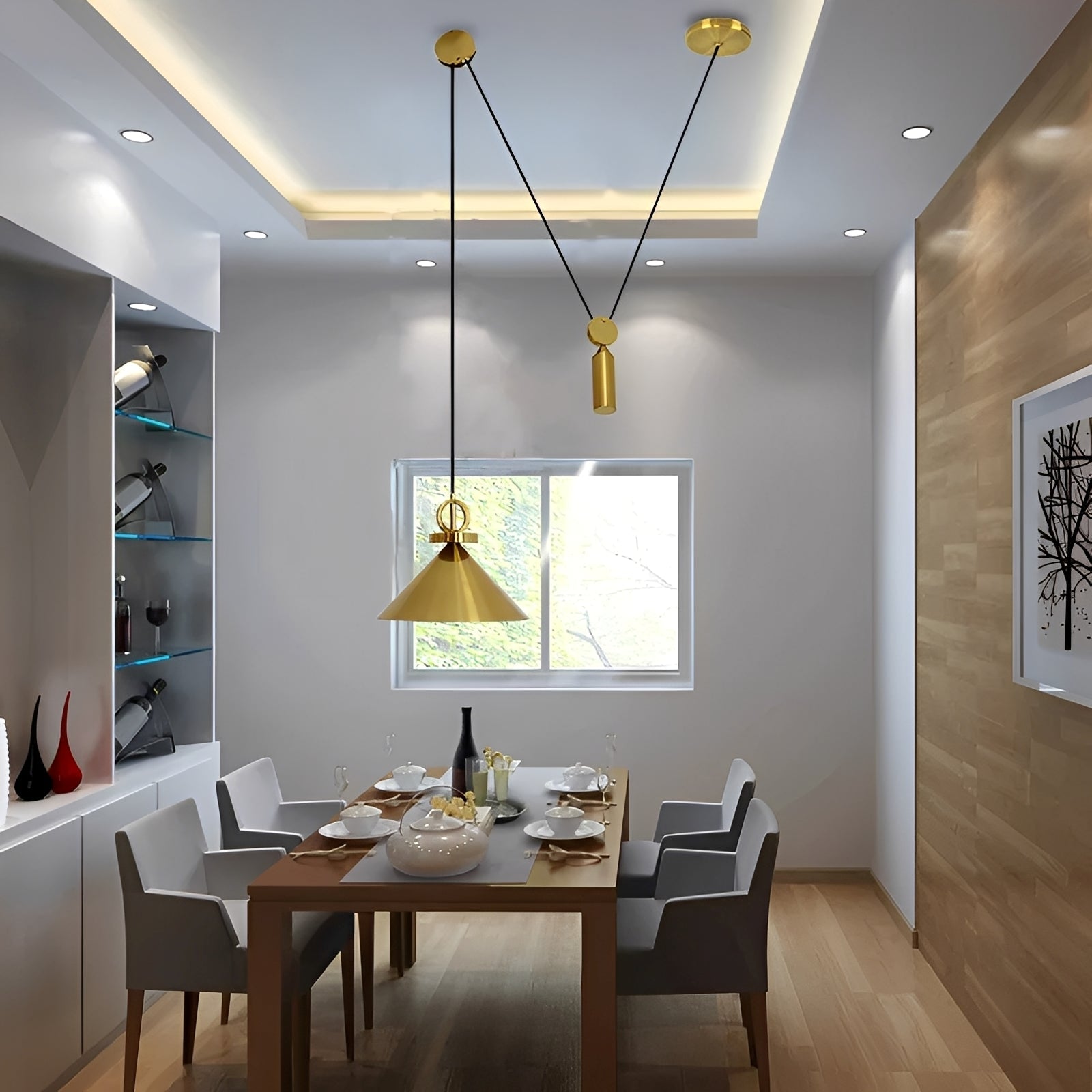 Die höhenverstellbare Aufhängung bis 1,5 m macht Ayaka besonders anpassungsfähig. Mit der LED-Lichtquelle, die warmes oder dreifarbiges Licht bietet, passt sie sich leicht verschiedenen Stimmungen an.