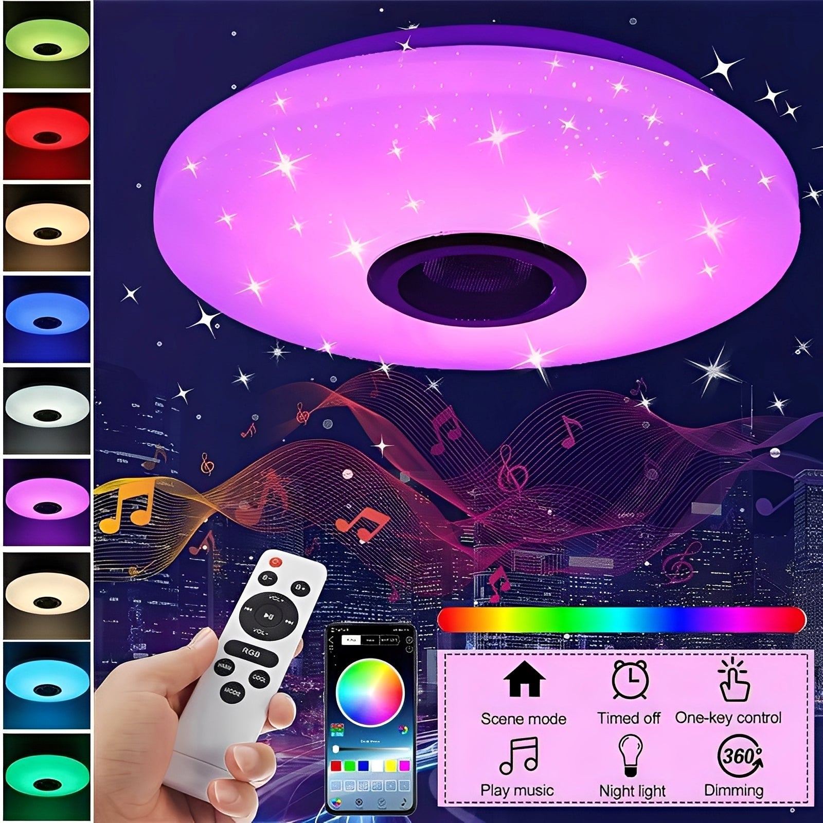 - Funktionen: APP-Steuerung, Fernbedienung & Bluetooth-Audio