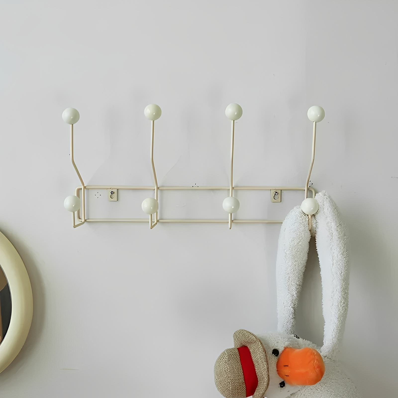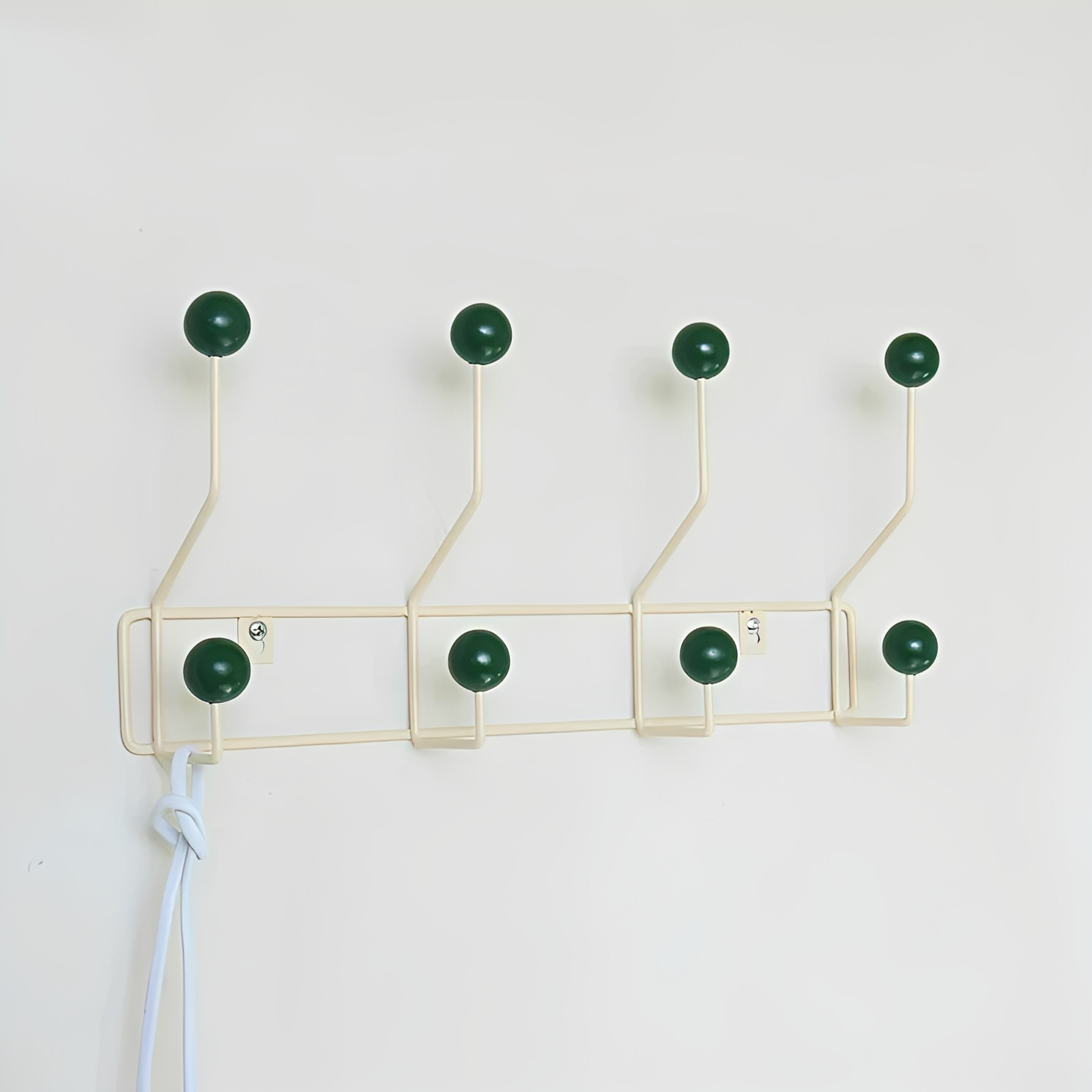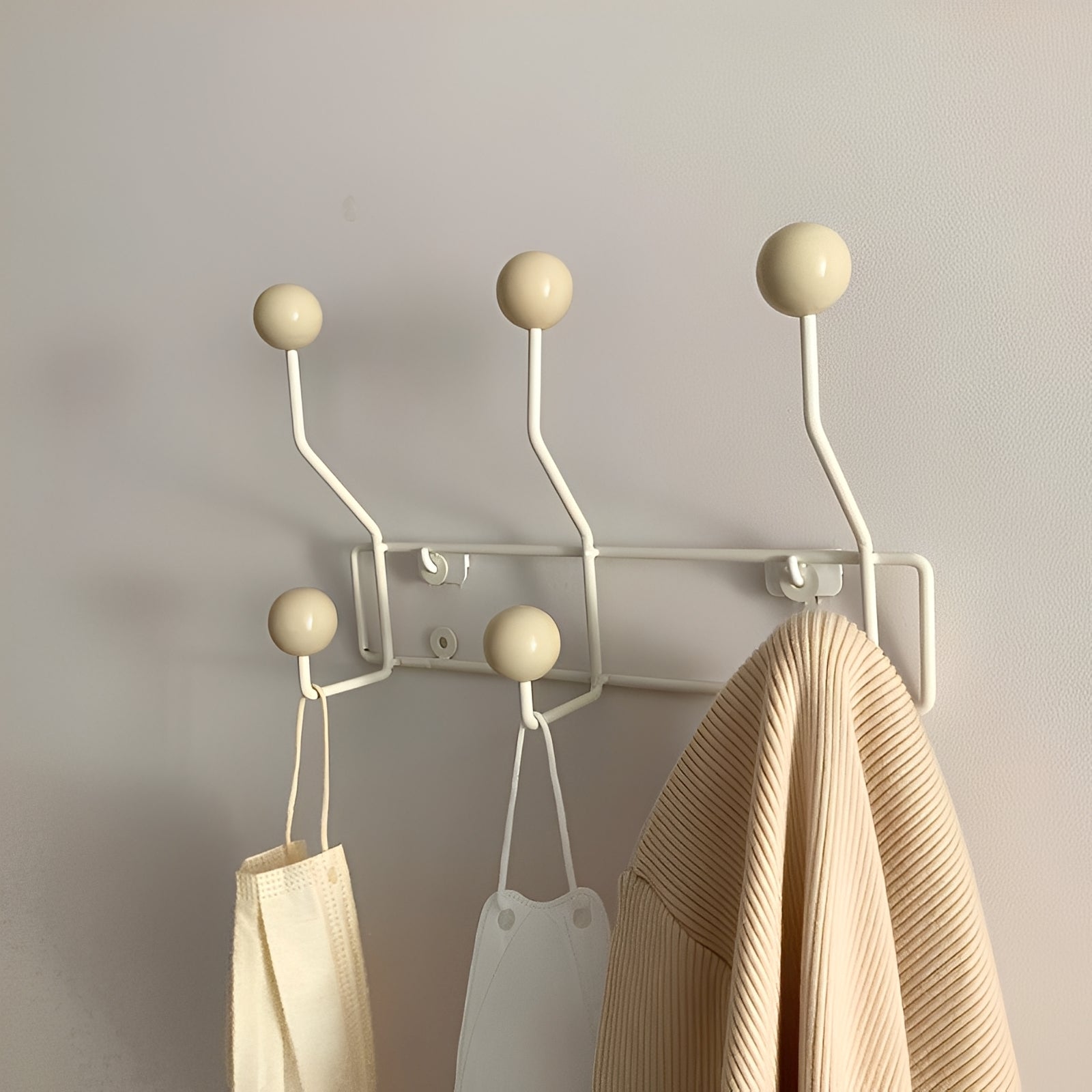Benno kombiniert Praktikabilität mit schickem Design – dieser moderne Kleiderhaken aus starkem Eisen mit cremefarbenen Holzkugeln ist perfekt für Bekleidungsgeschäfte, Cafés, Eingangsbereiche oder Schlafzimmer. Die klaren Linien und das einfache Aussehen passen problemlos in jede moderne Einrichtung. Wegen der stabilen Bauweise ist Benno ideal zum Aufhängen von Jacken, Hüten, Taschen oder Accessoires. Erhältlich mit drei oder vier Haken und in zwei Größen – für flexible Einsatzmöglichkeiten mit dekorativem Wert.