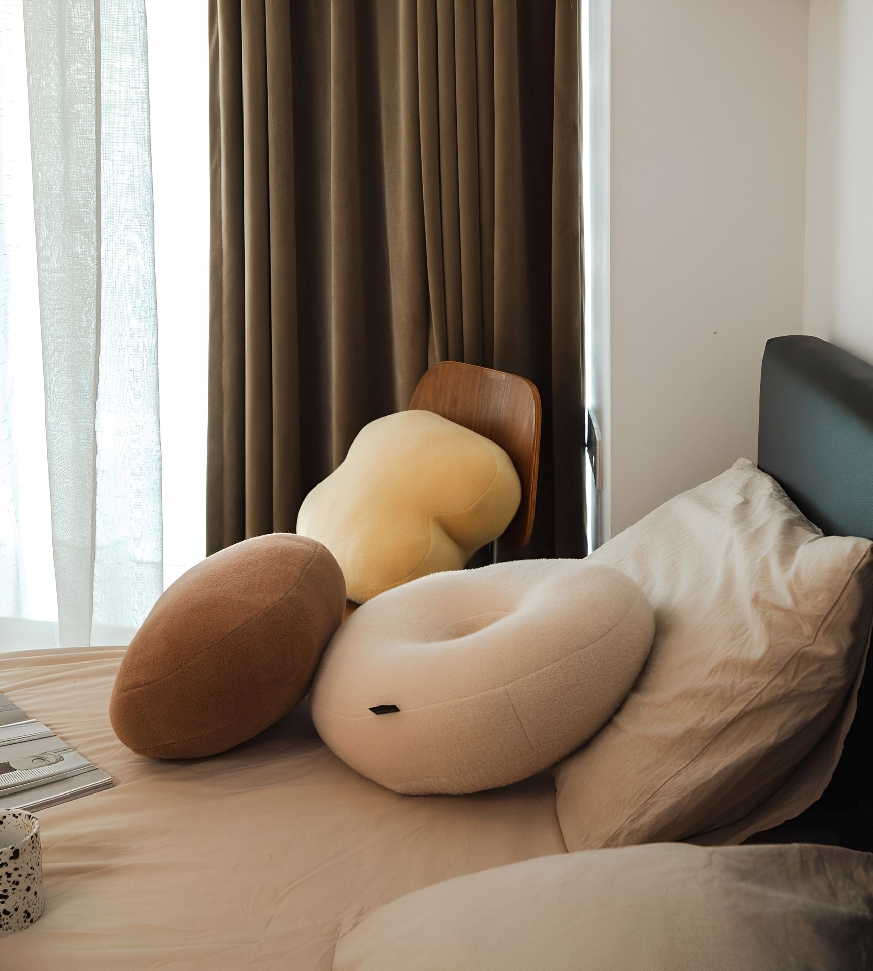 Gefüllt mit hochwertiger Polyesterfaser, bietet Candice eine sanfte Unterstützung für Rücken oder Taille und sorgt gleichzeitig für ein angenehmes Gefühl. Mit den hübschen Farben „Cream Cake“ und „Beige Donut“ setzt es sanfte Akzente in modernen Wohnstilen.