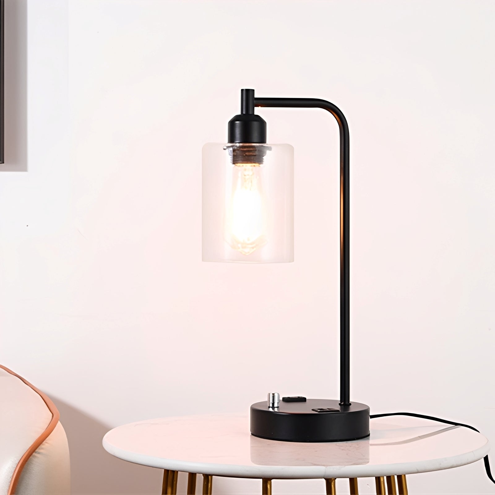 Carmina kombiniert modernes Aussehen mit nützlicher Funktion. Die elegante Tischlampe aus Schmiedeeisen und Glas bietet nicht nur ein angenehmes Licht, sondern auch zwei eingebaute USB-Ports für das gleichzeitige Laden von Handy, Tablet oder anderen Geräten.