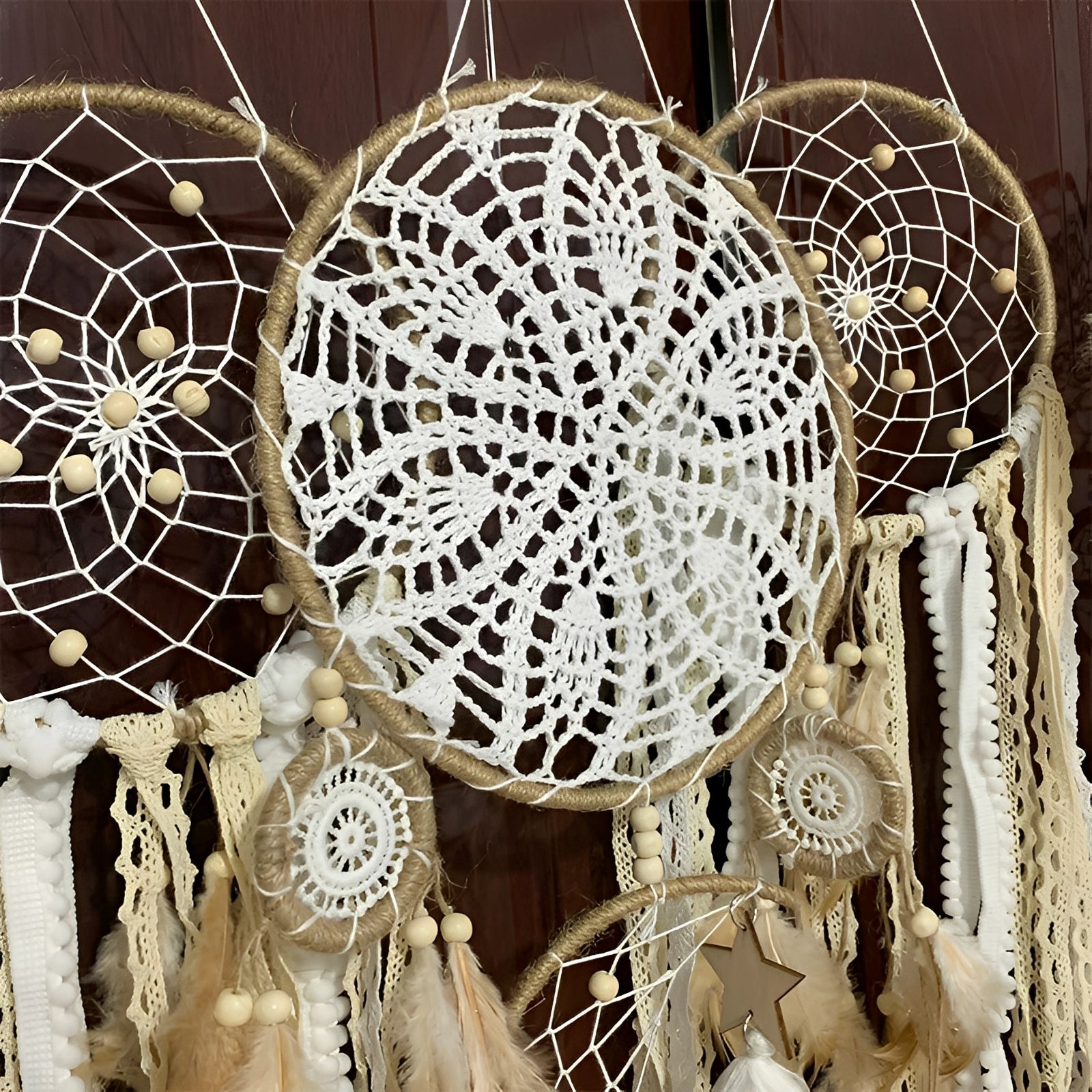 Dreama bringt einen Hauch von boho-inspirierter Eleganz in jeden Raum – egal ob Wohnzimmer, Schlafzimmer oder Eingangsbereich. Dieses elegante Traumfänger-Set im europäischen Stil besteht aus fünf handgefertigten Ringen in unterschiedlichen Größen. Die feinen Federn und harmonischen Farben schaffen eine sanfte, beruhigende Stimmung. Verfügbar in Weiß, Kaffee, Grau, Rosa oder Schwarz – jeweils in den Größen 13–15–20–15–13 cm. Für kreatives Aufhängen an der Wand können auch echte Äste benutzt werden.