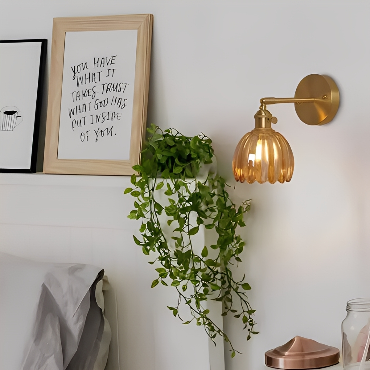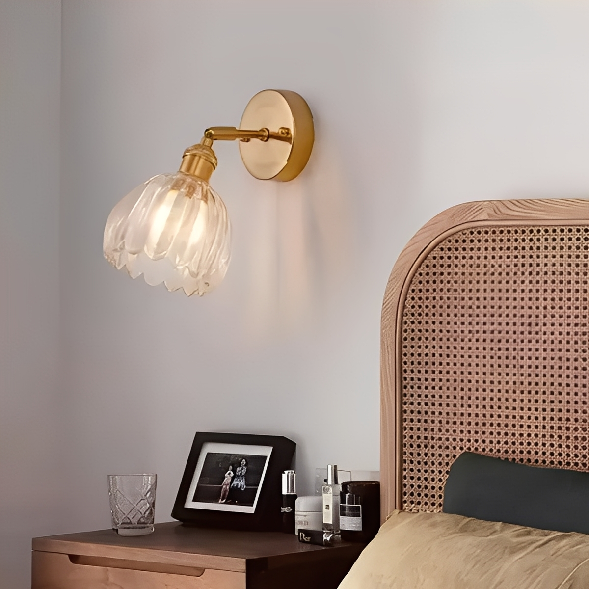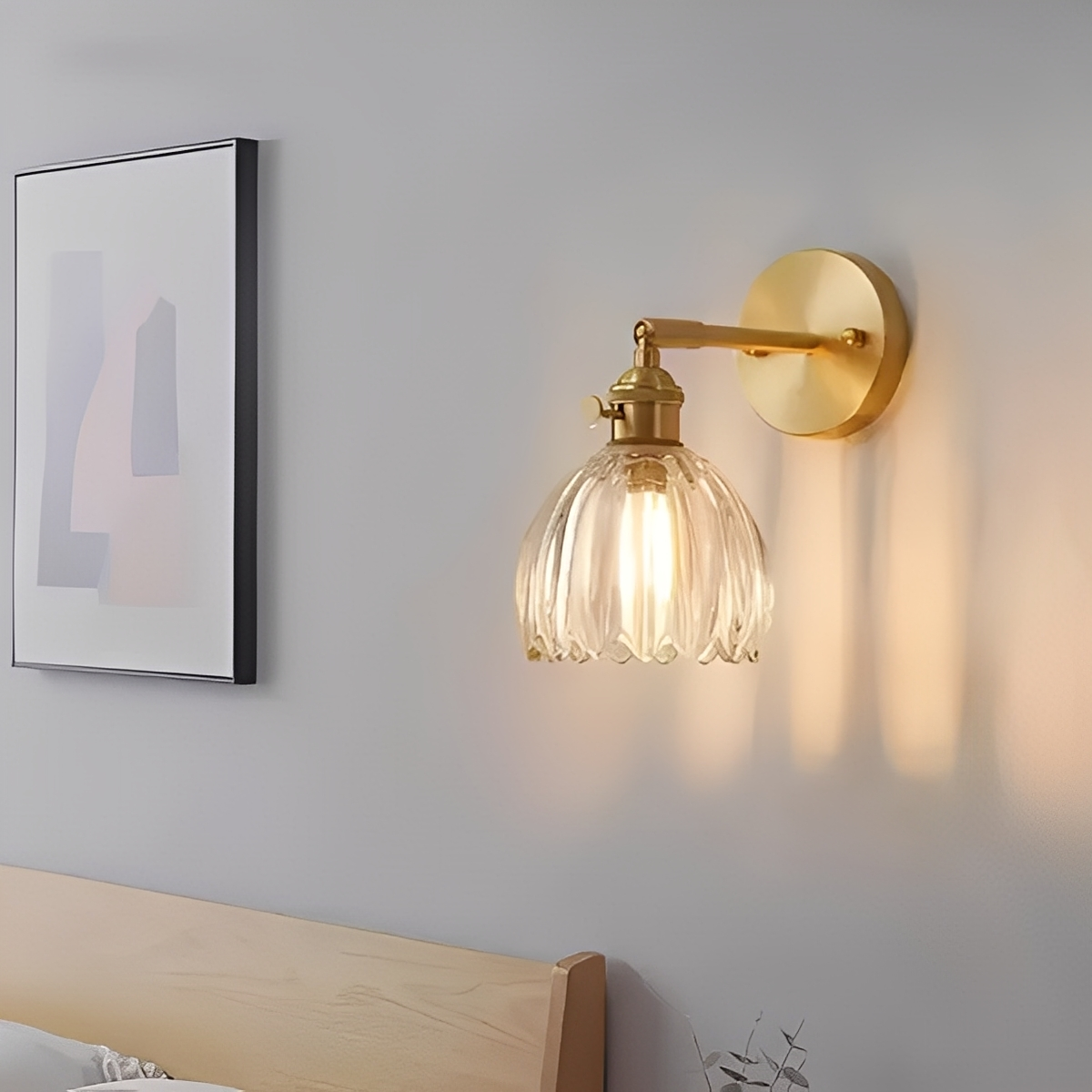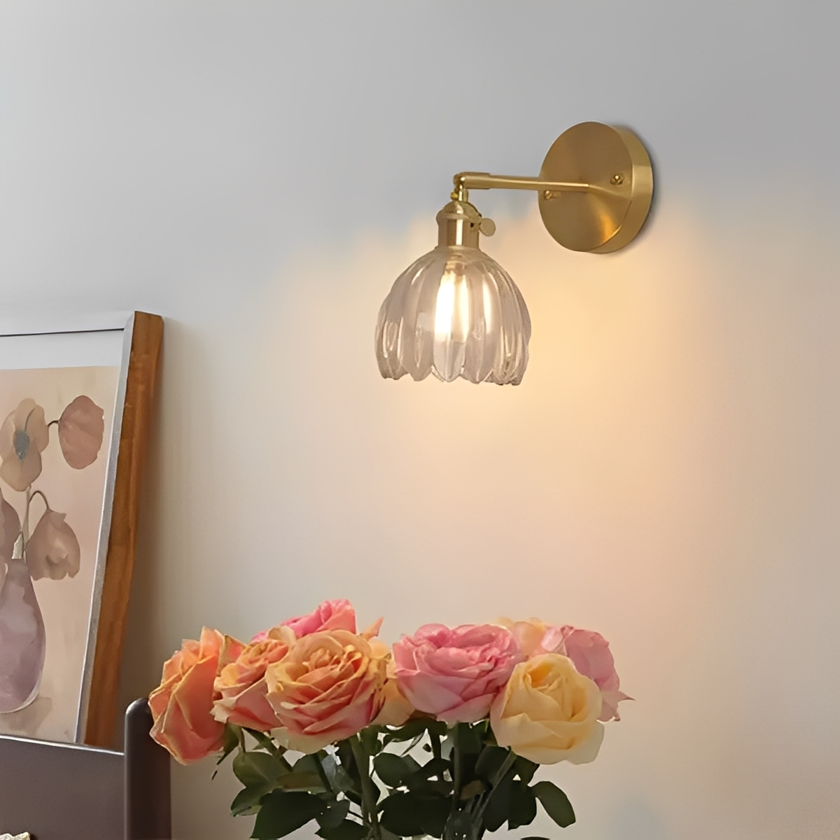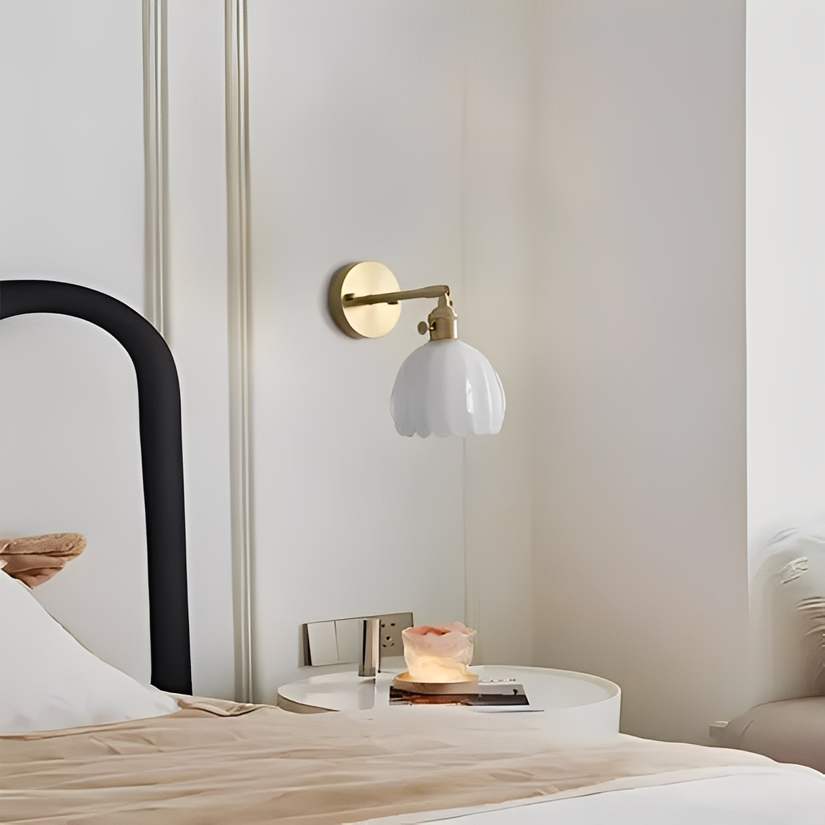 Die Fiona Wandleuchte kombiniert nordischen Minimalismus mit retro-inspirierter Eleganz. Ihr blumenähnlicher Glasschirm erzeugt ein warmes, gemütliches Licht und setzt stilvolle Akzente – ideal für Schlafzimmer, Wohnzimmer oder Flure.