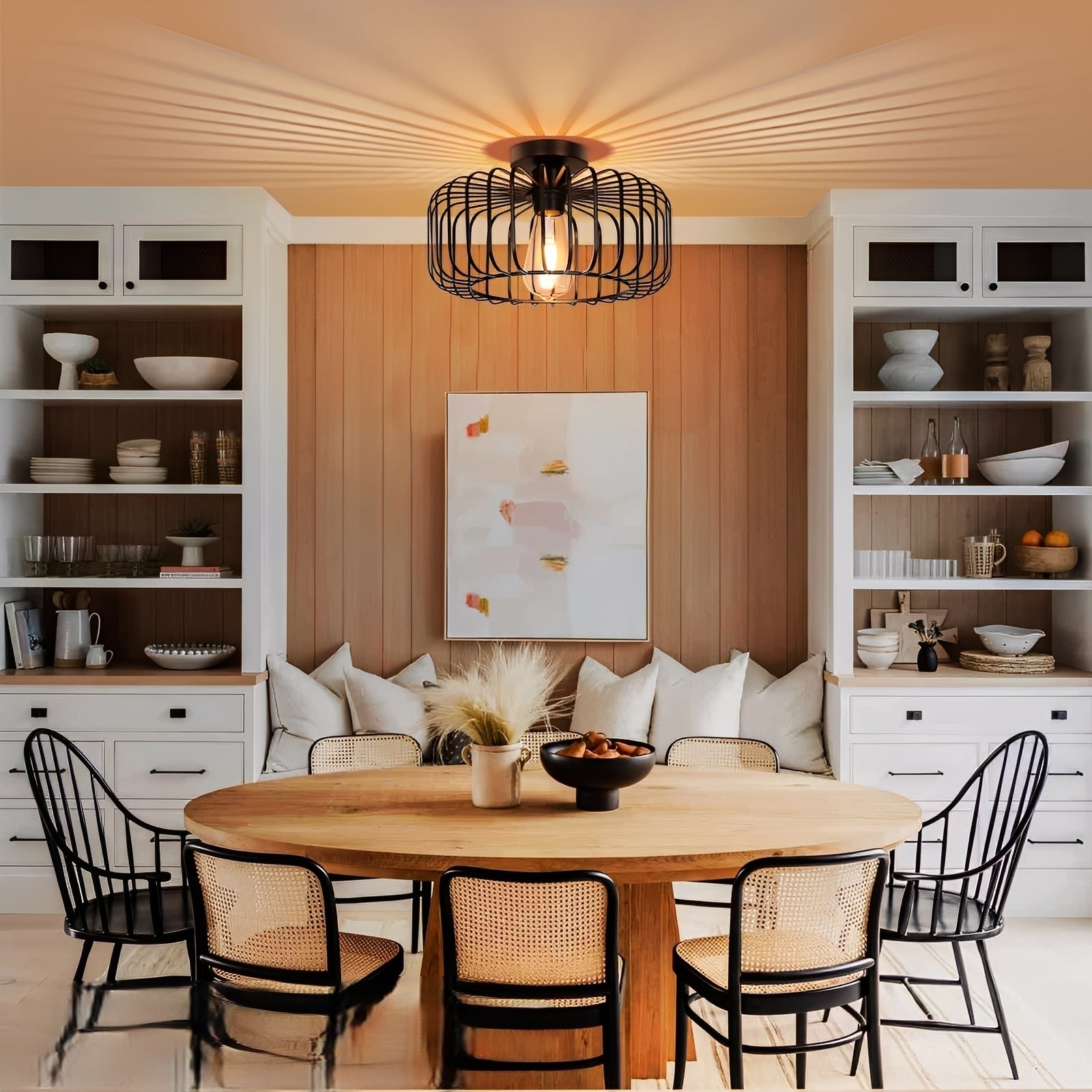 Mit einer Spannung von 220V und einer energiesparenden LED-Lichtquelle sorgt die Freya Deckenleuchte für angenehmes Licht und eignet sich optimal für Räume zwischen 10㎡ und 15㎡. Das Design im Vogelkäfig-Stil garantiert eine gleichmäßige Lichtverteilung und erzeugt eine gemütliche Atmosphäre.