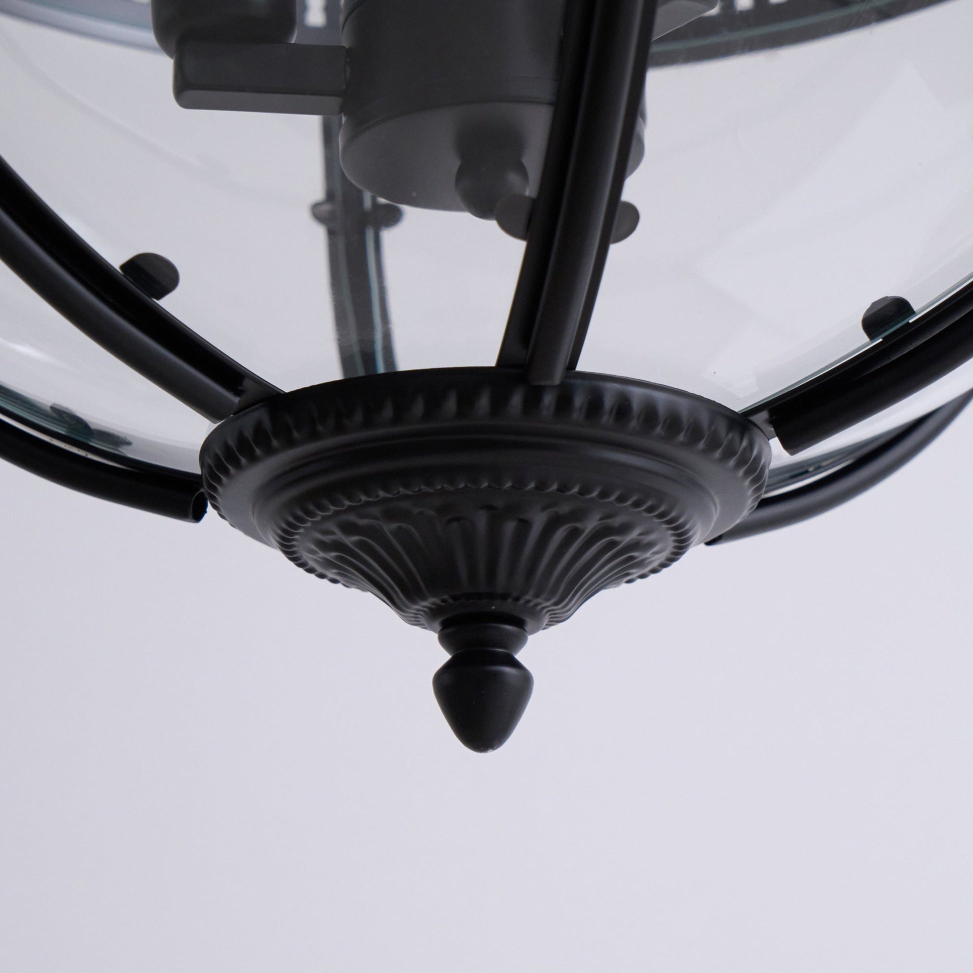 Die Gideon Hängeleuchte vereint den amerikanischen Industriedesign-Stil mit zeitloser Eleganz. Ihr rundes Design mit klaren Glaskugeln und robustem Eisenrahmen macht sie zu einem markanten Stück in jedem Raum.