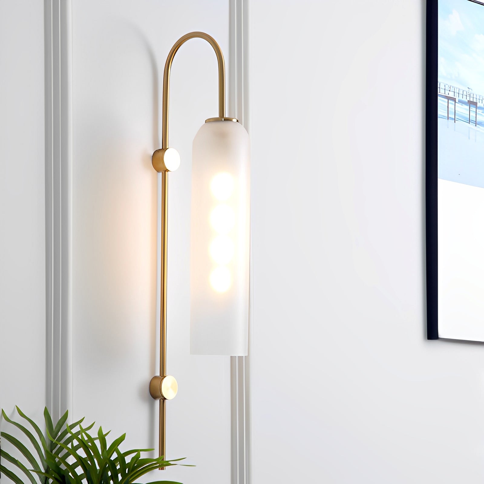 Die Goleta Wandleuchte bringt mit ihrem geriffelten Glasschirm und dem schön gebogenen Metallarm einen Hauch von Mid-Century-Charme in Ihr Zuhause. Ideal für den Flur, das Wohnzimmer oder das Schlafzimmer sorgt sie für eine sanfte und stilvolle Beleuchtung. Die Kombination aus Glas und Metall verleiht jedem Raum einen dekorativen Retro-Look.