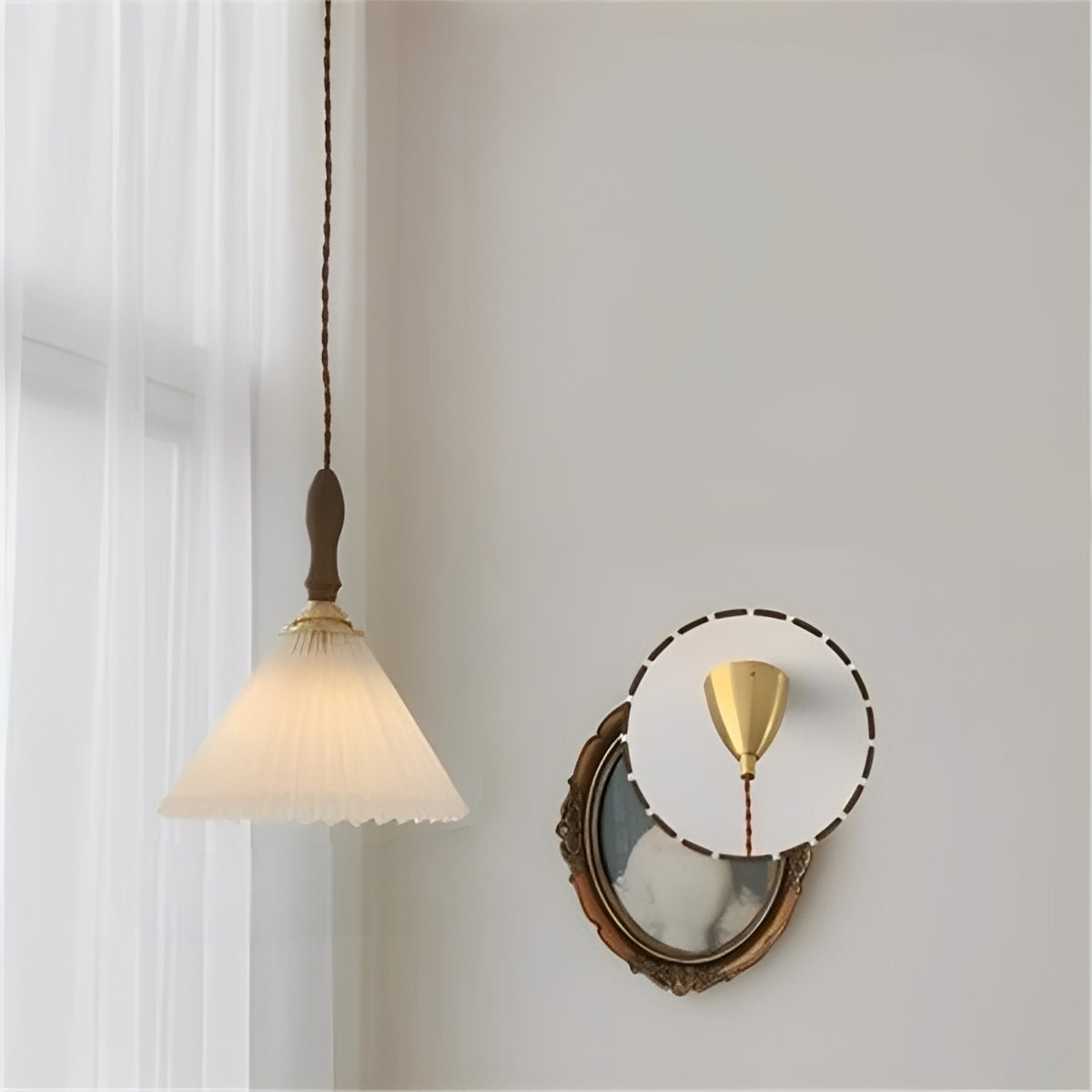 Die Kaito Pendelleuchte und Wandlampe vereint retro-japanisches Design mit stilvoller Schlichtheit. Der Schirm aus Kupfer und das Gehäuse aus Walnussholz verleihen der Lampe zeitlose Eleganz, ideal als Pendelleuchte oder Wandlampe für moderne Schlafzimmer, Flure oder Nachttische geeignet.