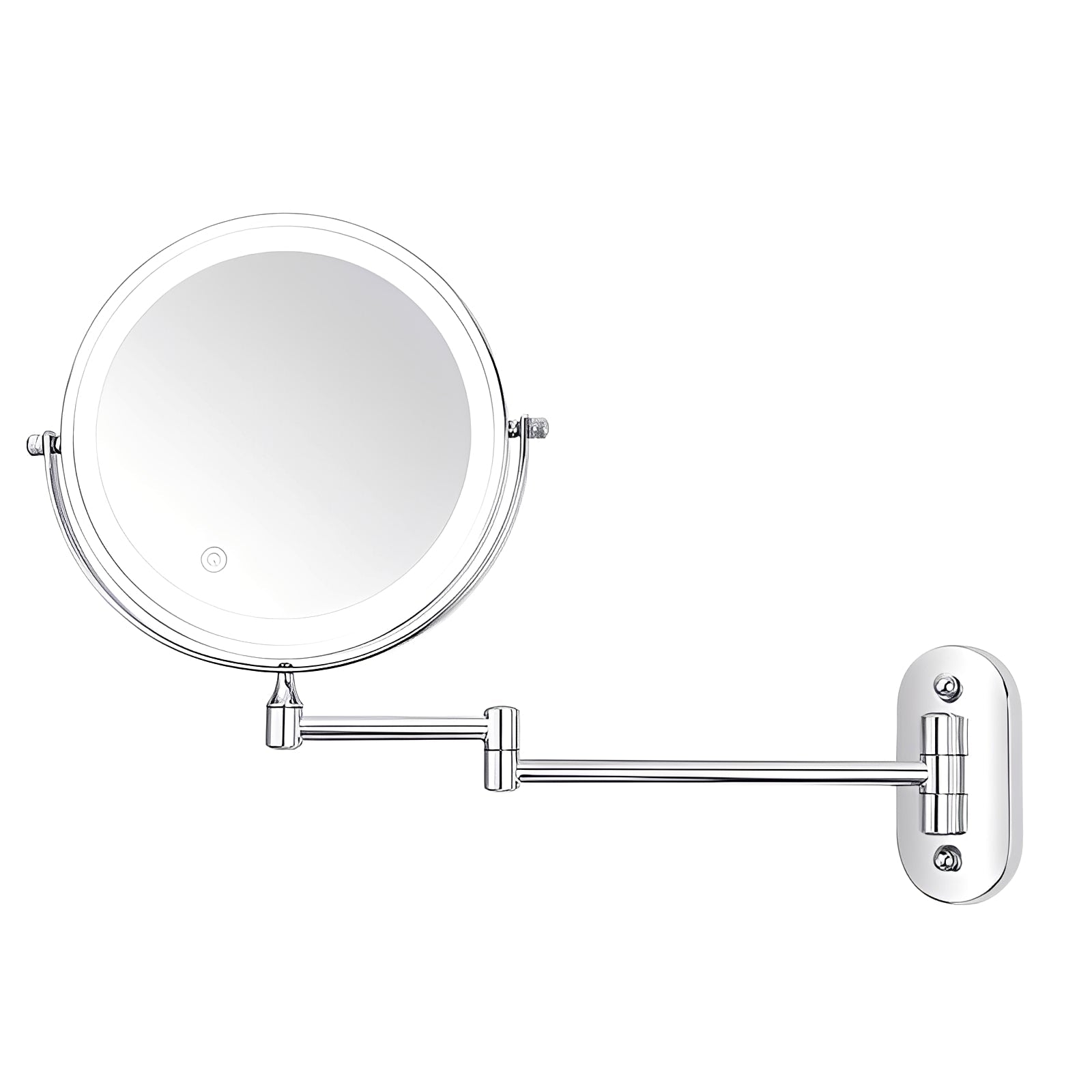 Mit Kaori bringen Sie stilvolles Design und höchste Funktionalität in Ihr Bad oder Ihren Schminkbereich. Dieser LED-beleuchtete, klappbare Wandspiegel mit Metallrahmen und Spiegelglas bietet eine brillante Spiegelung und ist in unterschiedlichen Größen und Vergrößerungsstufen verfügbar. Ideal für exaktes Schminken, Rasieren oder Hautpflege – mit wahlweisem Akku- oder Batteriebetrieb.