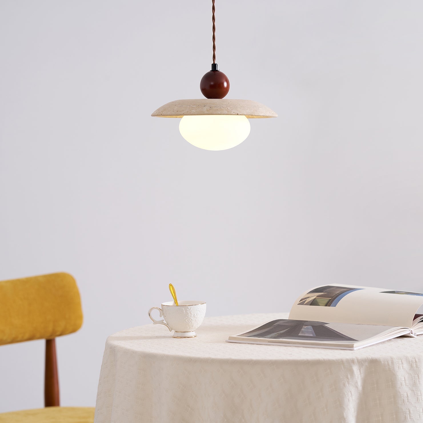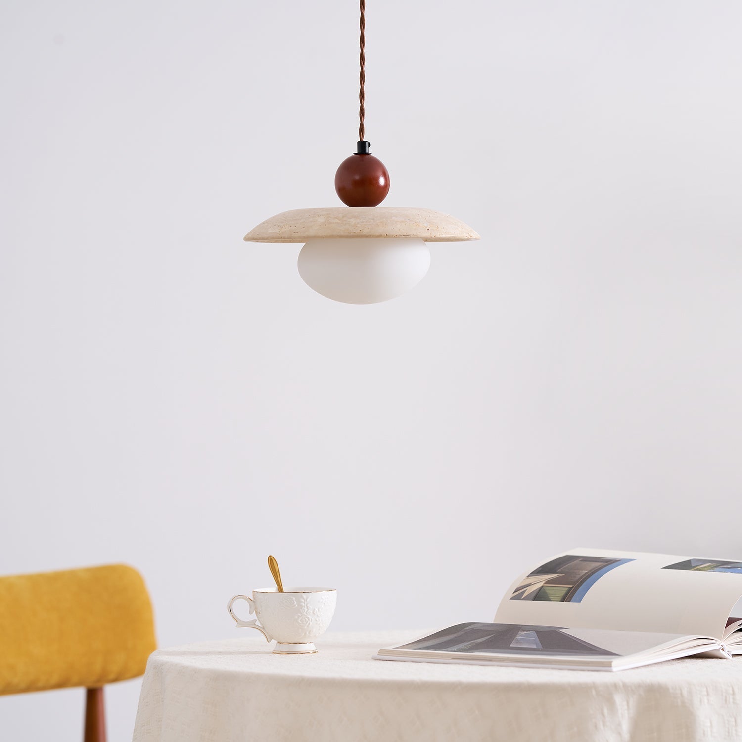 Die Kaori Pendelleuchte ist ein Kunstwerk aus natürlichem Travertin, das zeitlose Eleganz mit organischer Schönheit vereint. Jede Lampe ist ein Unikat – die feinen Maserungen und Farbnuancen des Steins geben ihr einen besonderen Charme in modernen und minimalistischen Umgebungen. Ideal für Essbereiche, Wohnzimmer oder stilvolle Eingangsbereiche.