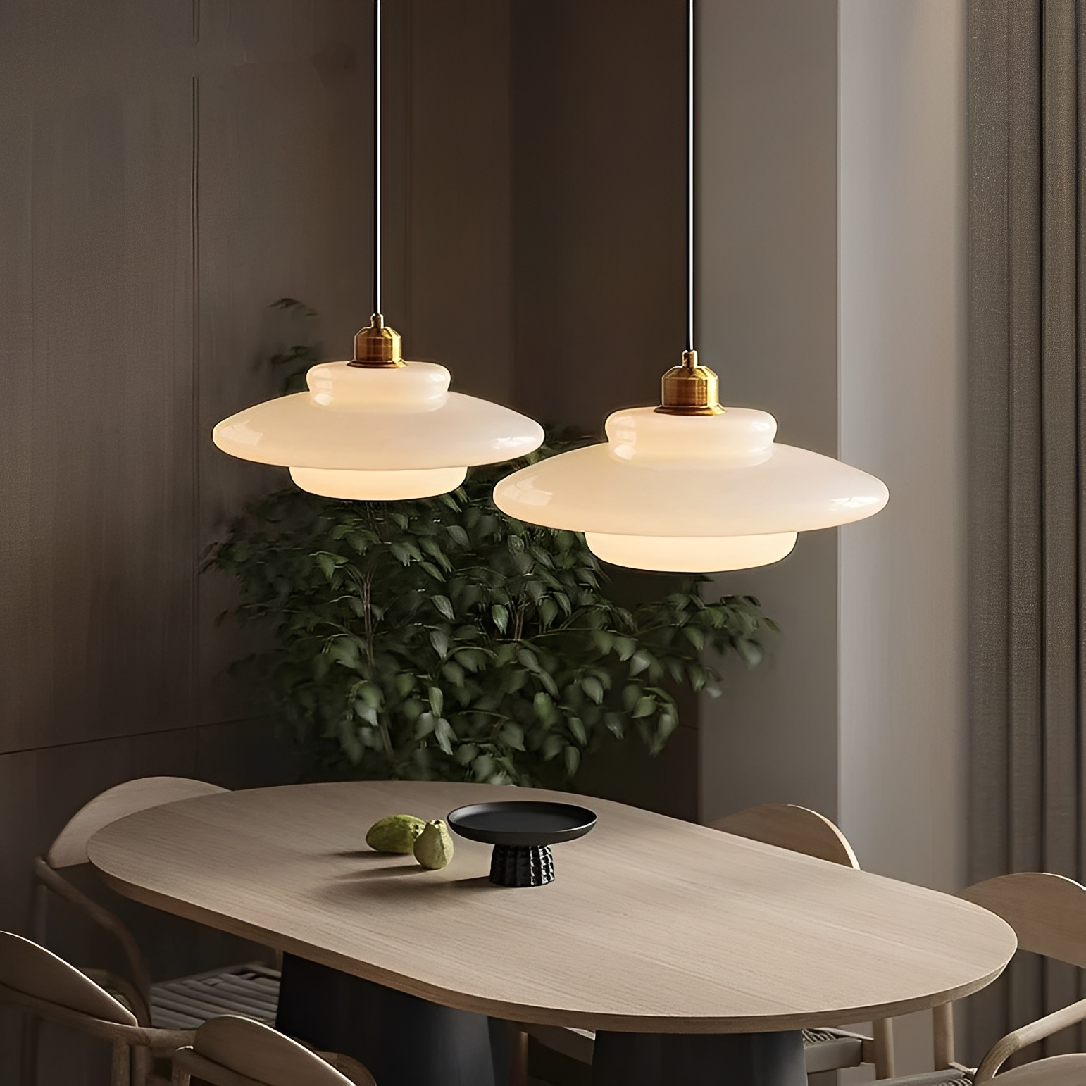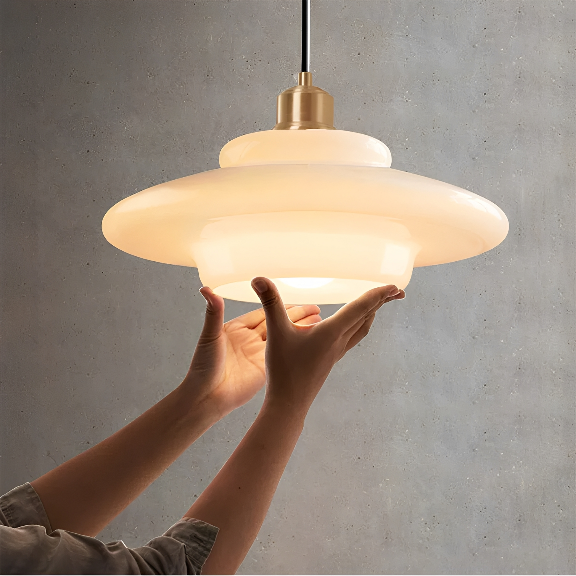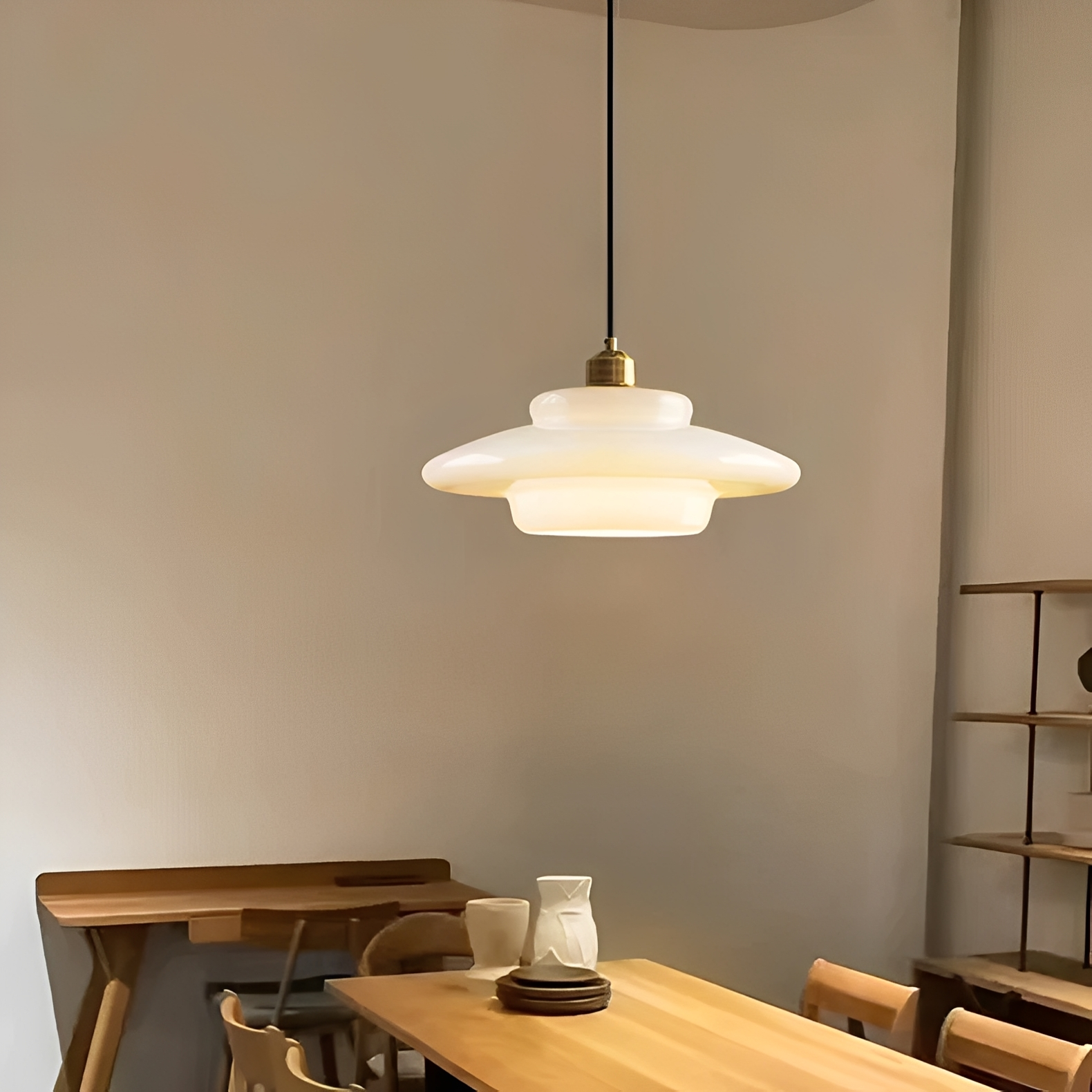 - Eigenschaften: Cremefarbener Glas-Lampenschirm, einfaches Design, warme Lichtatmosphäre