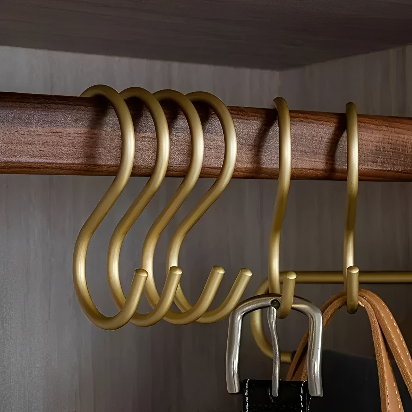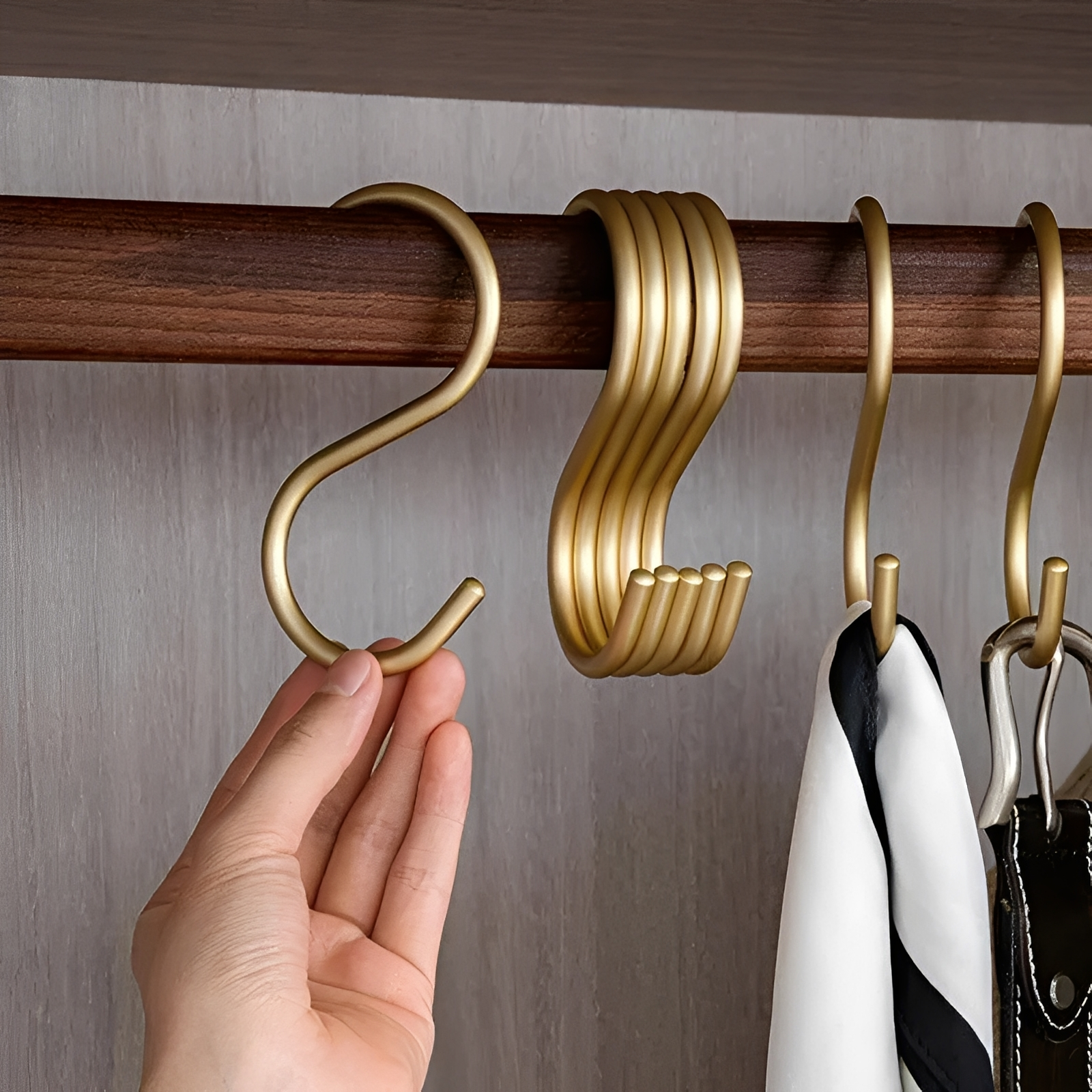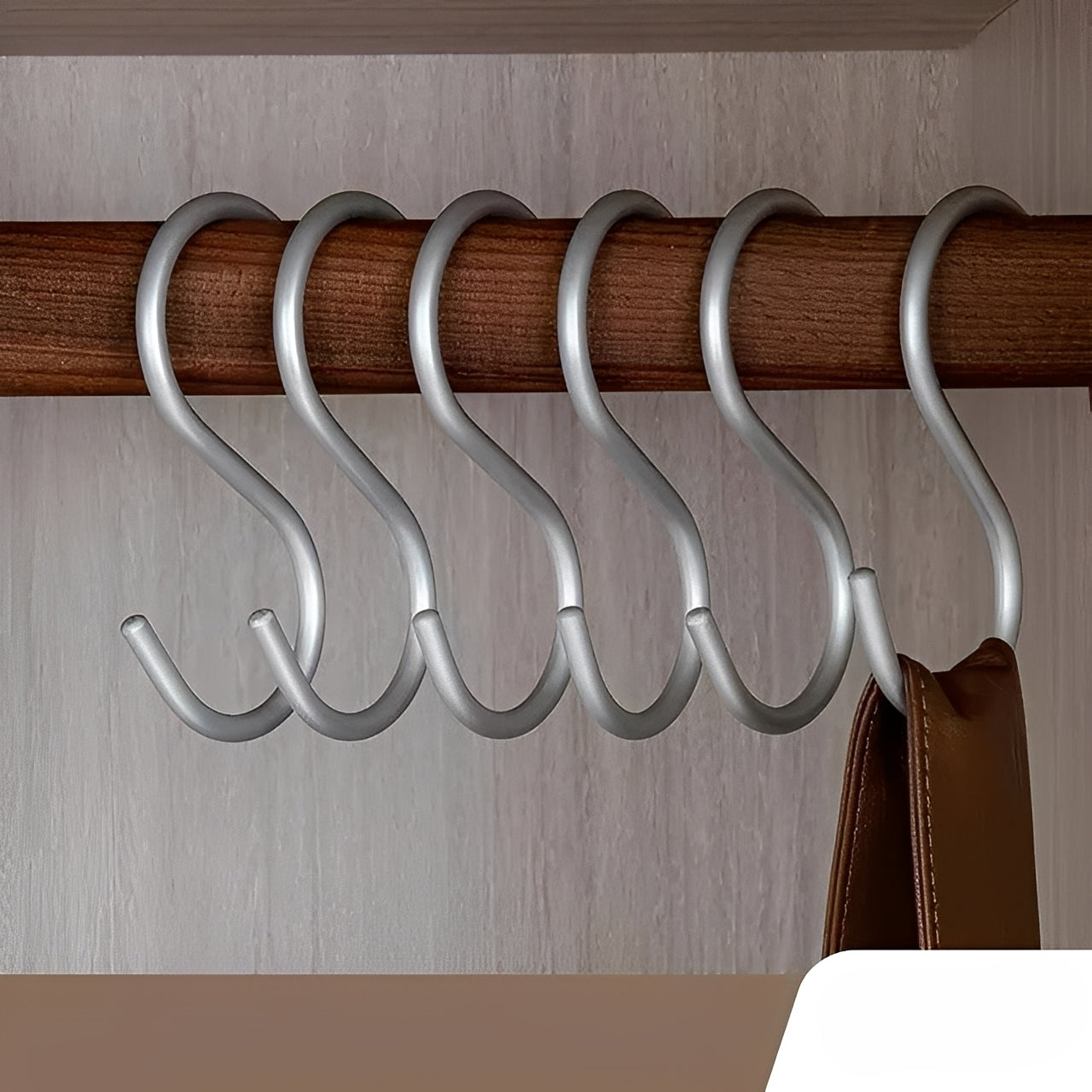 Livia verbindet schlichtes Design mit starker Haltbarkeit. Der S-förmige Haken aus robustem Aluminium ist perfekt, um Taschen, Schals oder Zubehör platzsparend und stilvoll aufzuhängen.