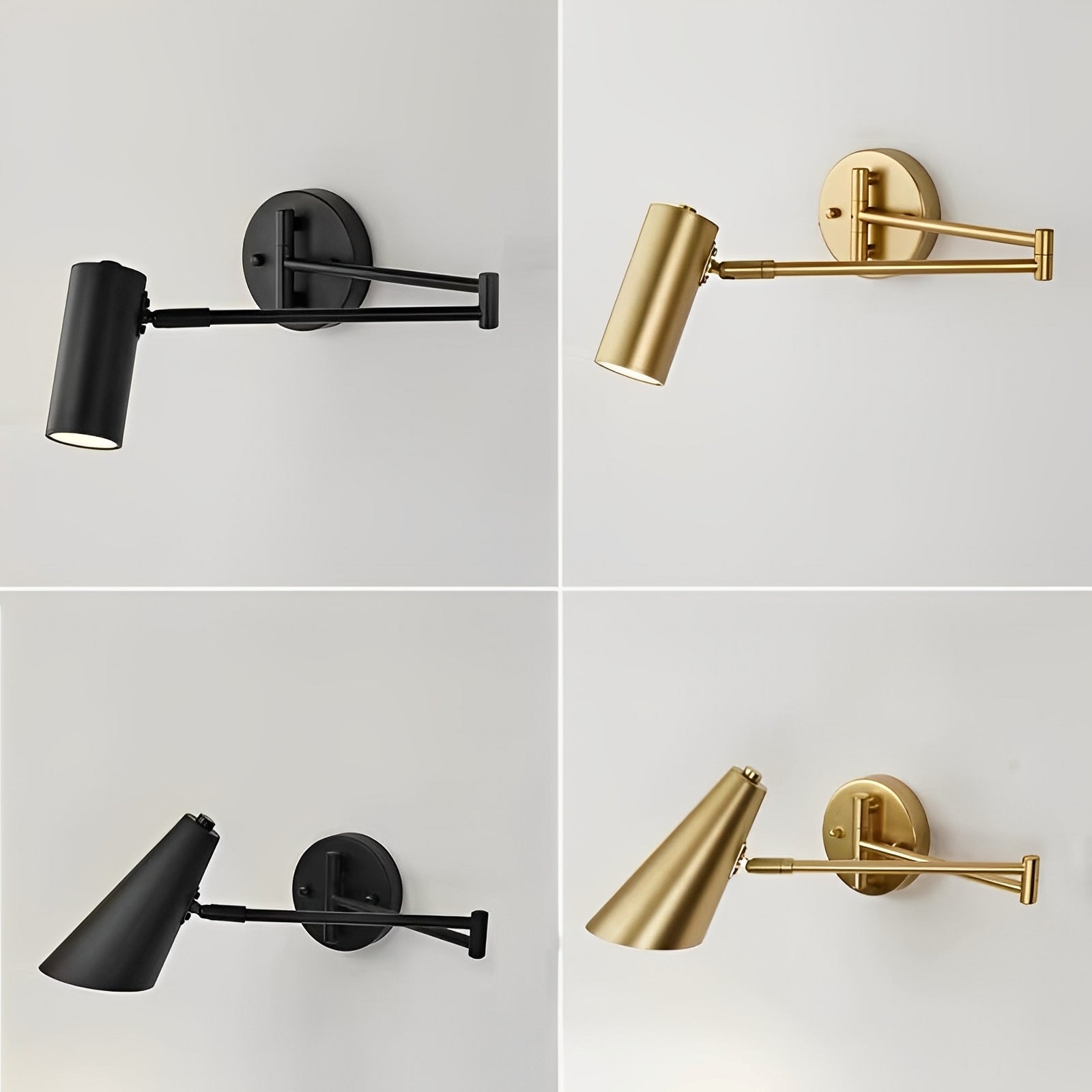 Die Mira Lampe für die Wand vereint schlichtes Design mit praktischer Flexibilität – ideal für Leseplätze, Arbeitsbereiche oder das Schlafzimmer. Der ausziehbare bewegliche Arm sorgt dafür, dass das Licht genau dorthin gelenkt wird, wo Sie es brauchen. Entscheiden Sie sich zwischen einem geraden oder trompetenförmigen Lampenschirm, jeweils in elegantem Gold oder modernem Schwarz. Durch die LED-Technik bietet Mira stromsparendes, angenehmes Licht bei niedriger Spannung. Ihr klappbares Design spart Platz und ist perfekt für kleine Räume.