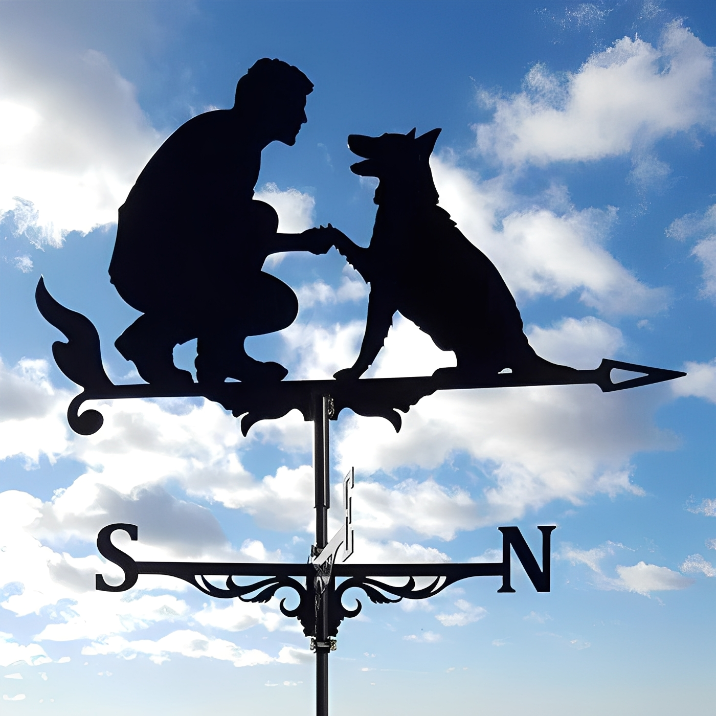 Die Rurik Wetterfahne vereint kunstvolle Schmiedekunst mit fantasievollen Details. Aus widerstandsfähigem Eisen gefertigt, trotzt sie Wind und Wetter und bringt mit ihren fantasievollen Formen – ob Drache, Hund oder Hahn – Bewegung und Magie in den Garten. Ihr stilvolles Design sorgt für ein faszinierendes Spiel im Wind und macht Rurik zu einem dekorativen Hingucker für Haus und Hof.