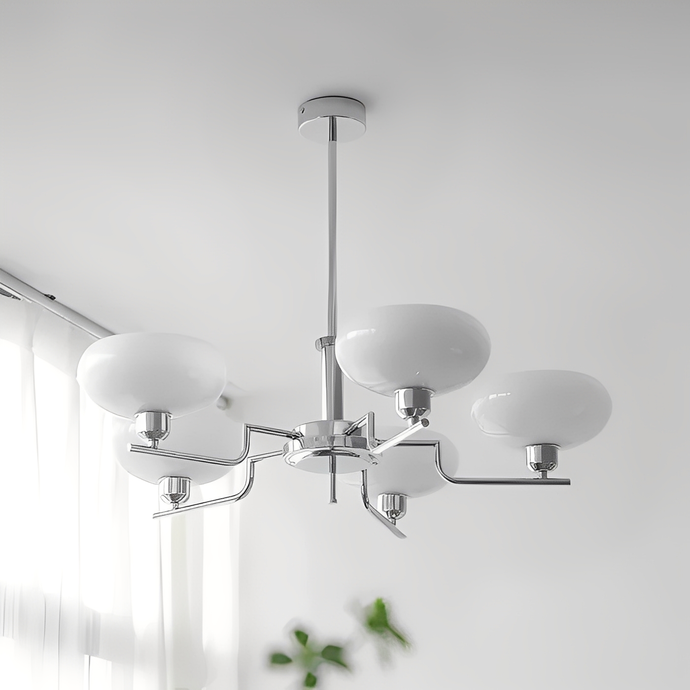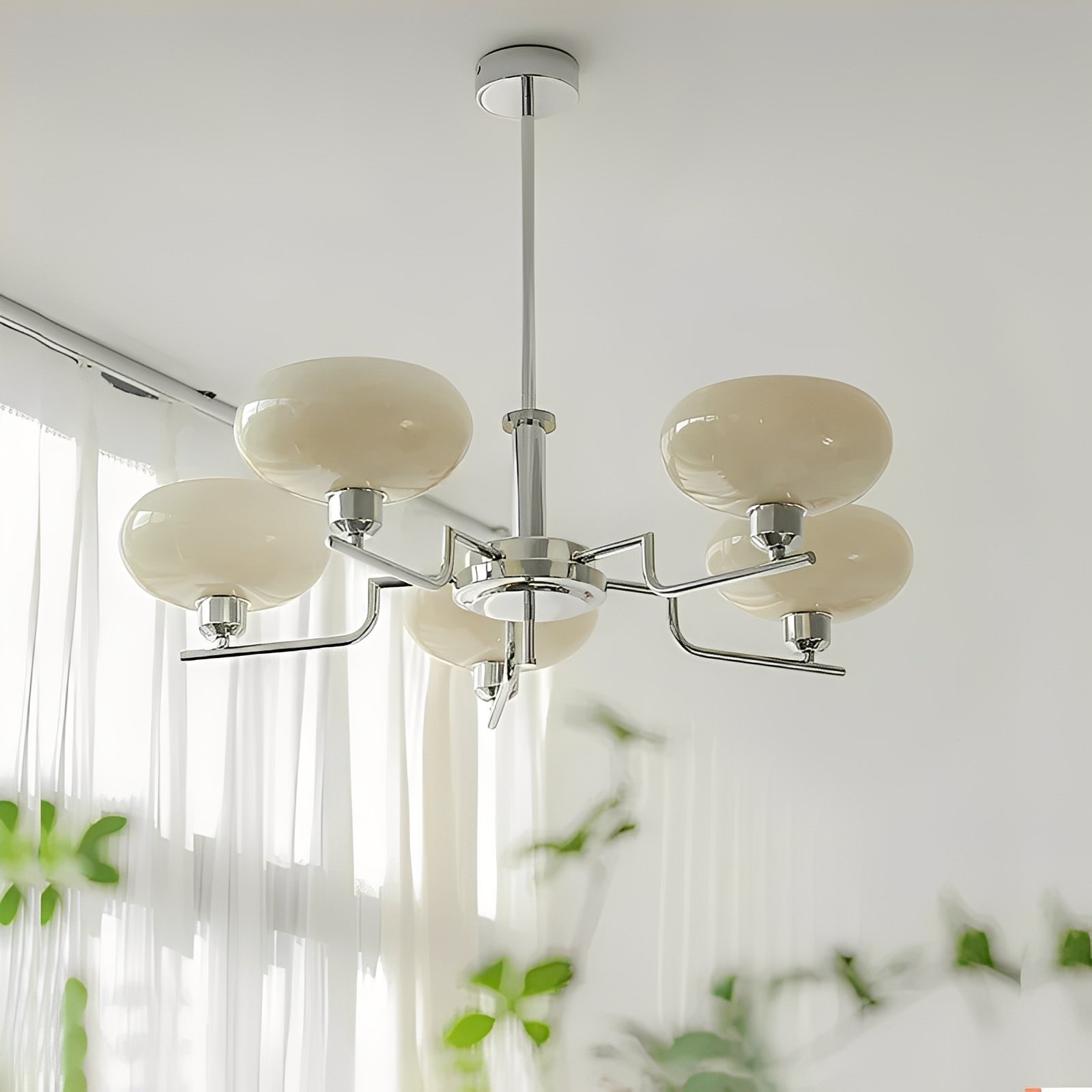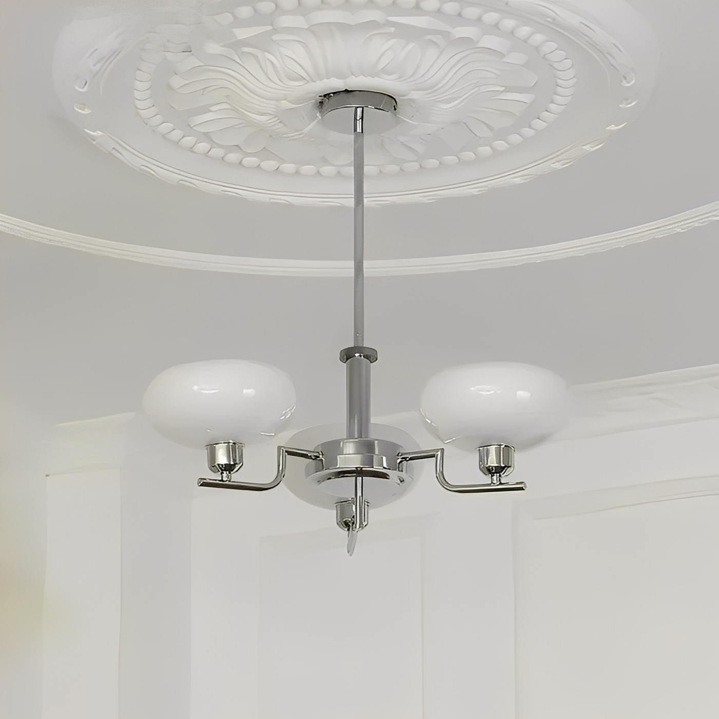 Der Selva Kronleuchter kombiniert den charmanten Retro Cream Style mit modernem, schlichtem Design. Mit seinen schicken Glasschirmen und klaren Linien bringt er stilvolle Beleuchtung in Wohn- und Schlafzimmer.