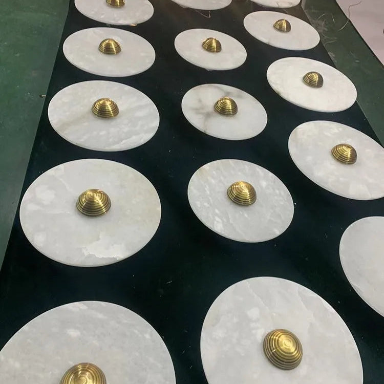 Die Theo Wandlampe vereint ein modernes, einfaches Design mit einem eleganten Marmor-Aussehen. Ihre runde Form und das sanfte Licht sorgen für eine gemütliche, stilvolle Atmosphäre in Schlafzimmern, Wohnzimmern oder Fluren.