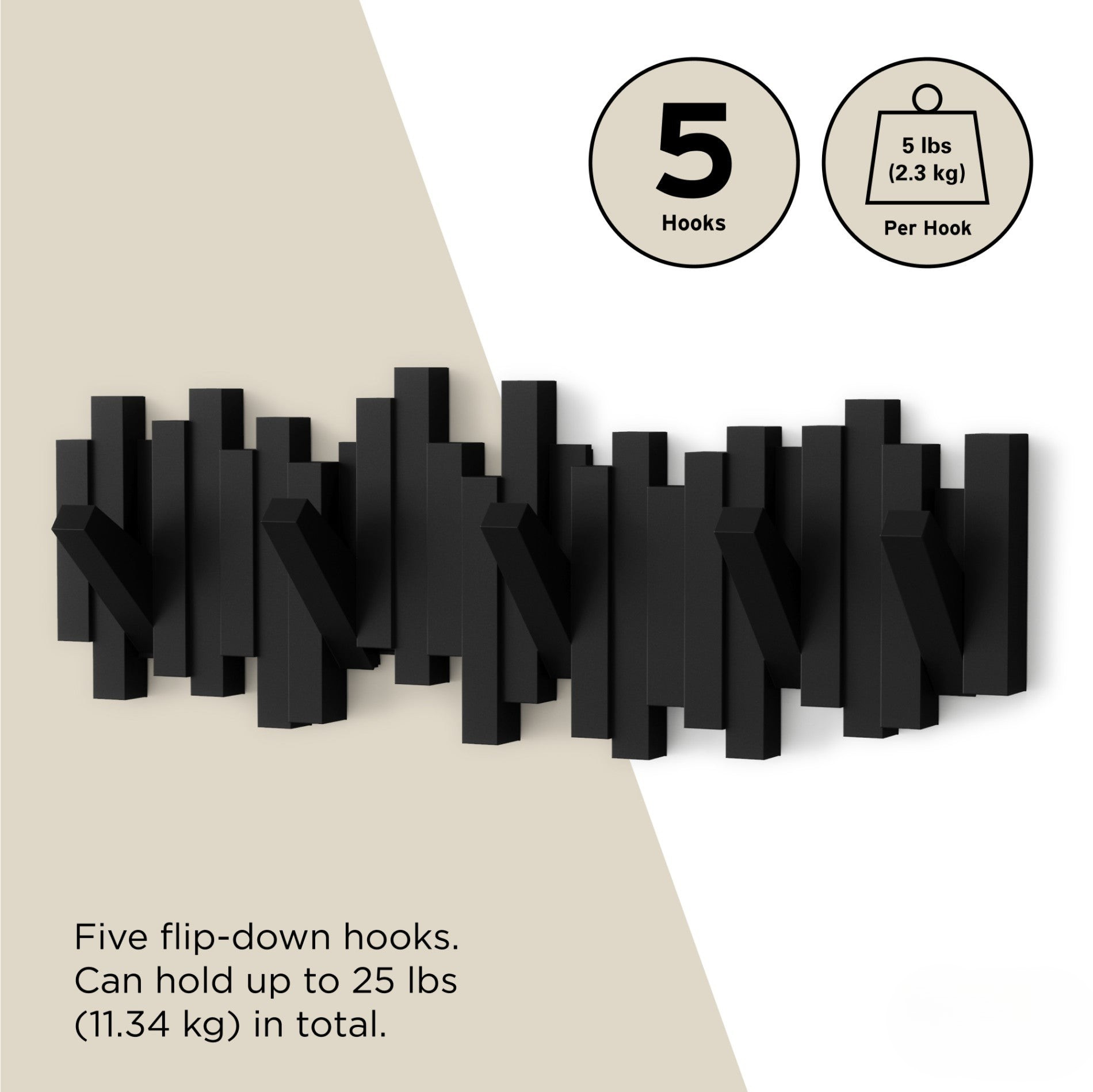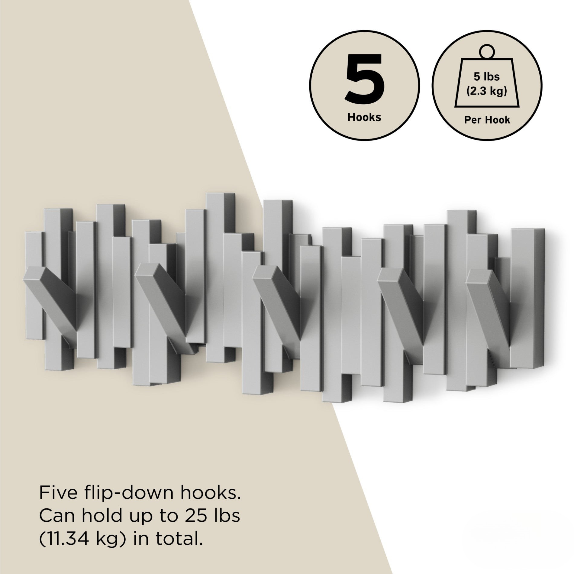 Klappbares & platzsparendes Design: Haken lassen sich bei Nichtgebrauch verstauen.