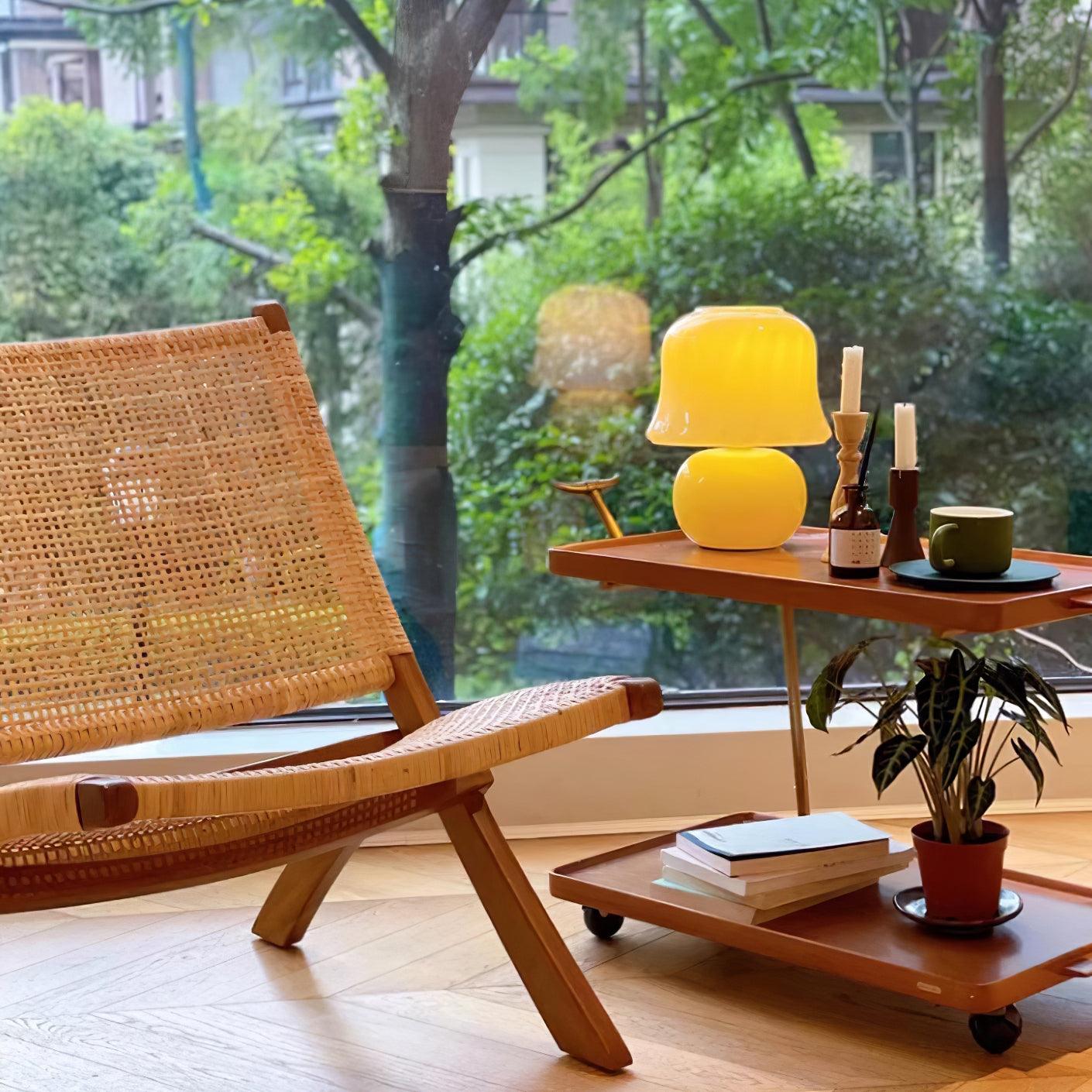 - Schickes Pilzdesign: Moderner Stil mit sanftem, cremigem Glas